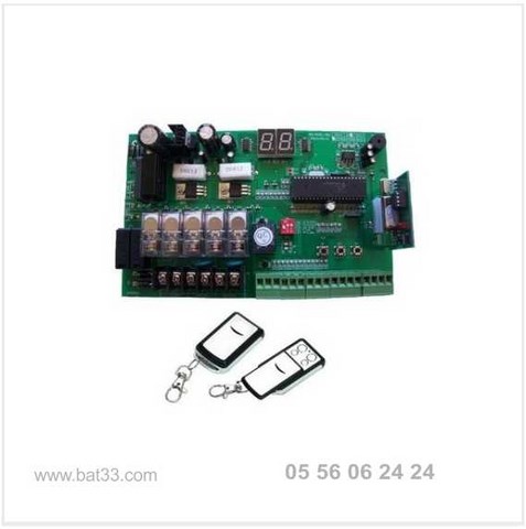 Carte de petite taille permettant de se loger dans de nombreux emplacement avec plusieurs niveaux de programmation permettant de répondre aux différents type d'installation et avec les particularités de chacune. Elle remplace n'importe qu'elle autre marque de carte électronique pour moteur 220 volts. 2 Moteurs 220 volts, lampes clignotante, Cellules, sorties alimentations accessoires 24VAC. Sortie disponible pour branchement de commande externe: commande ouverture totale et passage piéton. Télécommande supplémentaire pour 14,9 euros.
